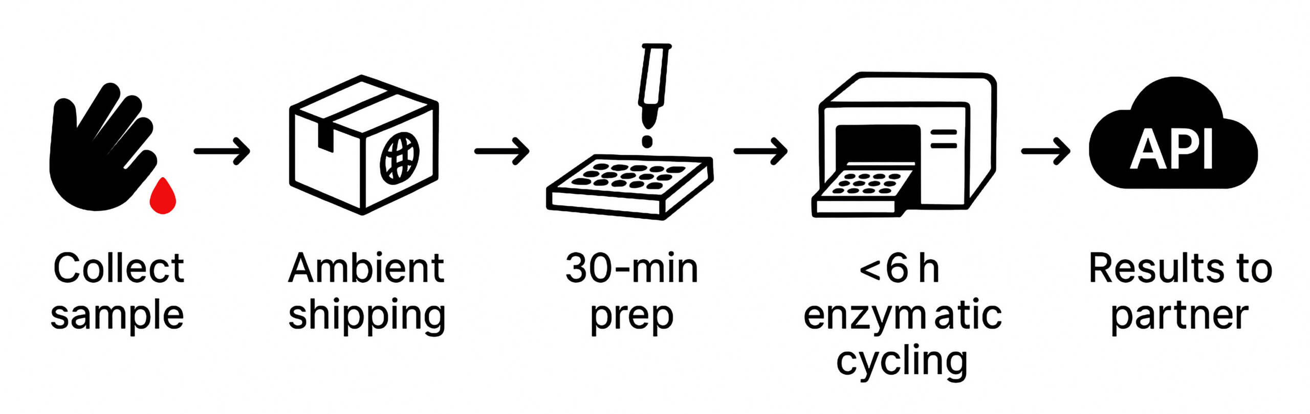 Our NAD test enables at-home sample collection with just two drops of blood on a collection card – quick and easy. Dried blood spot samples can be shipped worldwide, making NAD testing accessible to a broad customer base. Our method is simple to implement, and we provide comprehensive support to ensure seamless integration for our partners. Our testing method offers unparalleled convenience for laboratories and end-users.